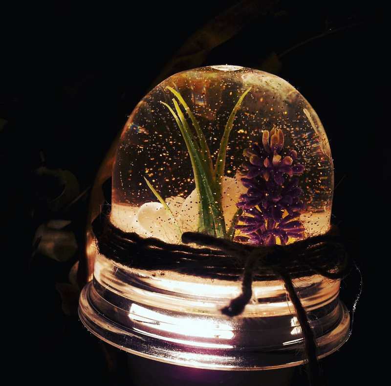液体の中でも劣化しにくいアーティフィシャルフラワーを中に入れた『スノードーム』。